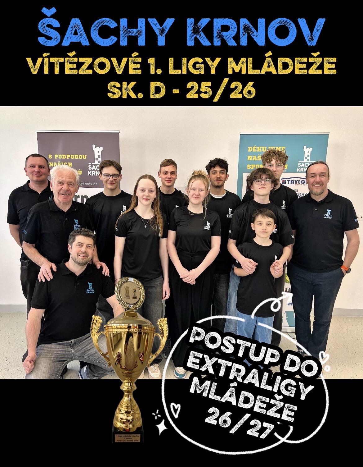 V neděli 12. 4. 2026 naše družstvo "A" sehrálo poslední kolo v letošním Krajském přeboru MKŠS a díky výhře nad domácím družstvem BŠŠ Frýdek Místek "B" se našim podařilo nejtěsnějším možným způsobem "urvat" 2. místo v konečném hodnocení soutěže a získat tak pro příští sezónu postup do 2. ligy!!