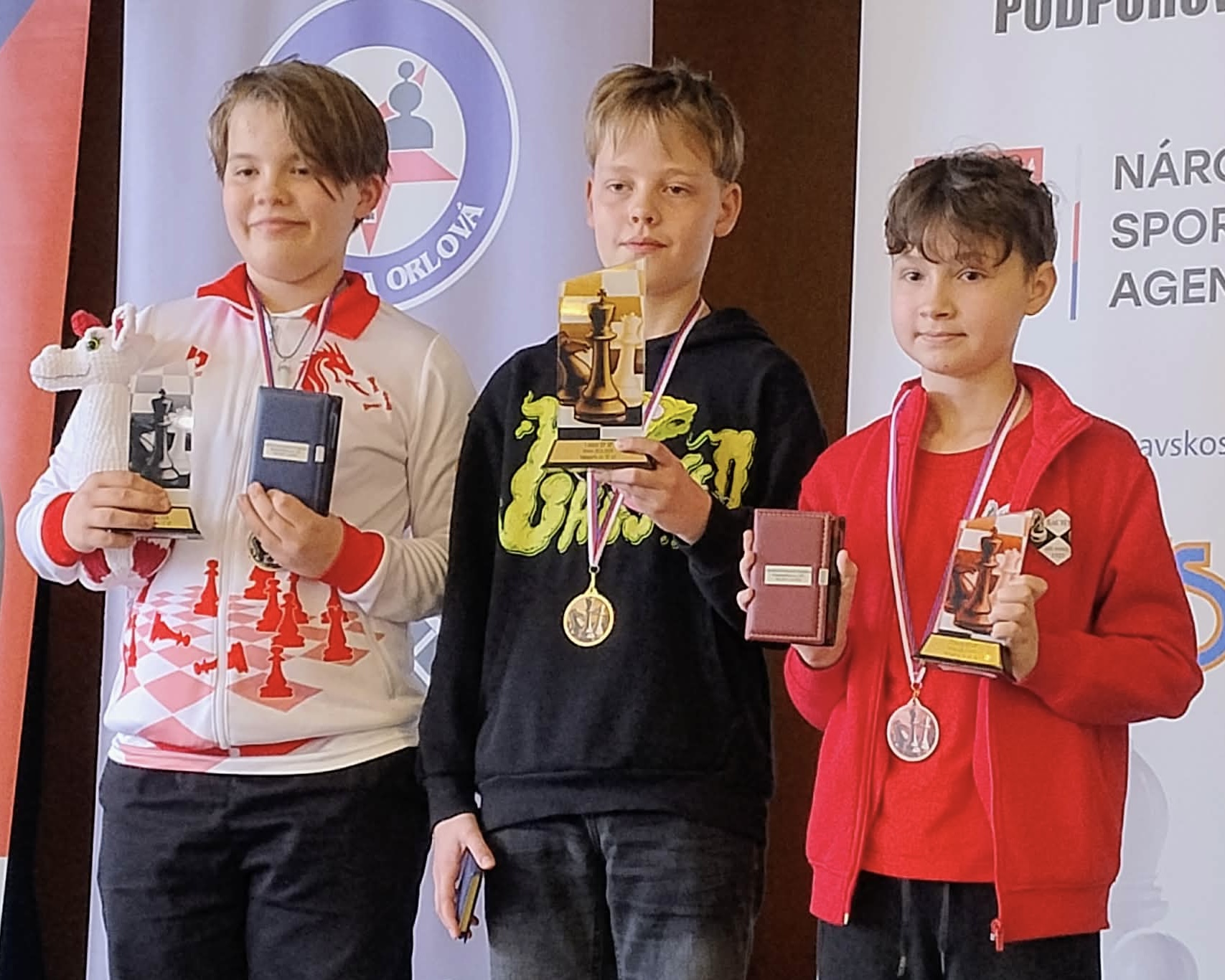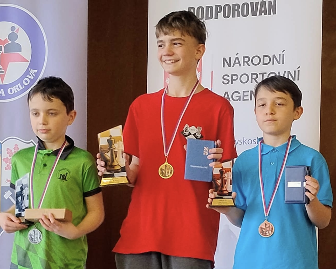 V sobotu 28.3.2026 hostila Orlová už 5. Krajský přebor mládeže v rapid šachu v této sezóně (celkově jich je 6). A i tento turnaj byl pro nás medailový, když naši borci uspěli hned ve třech kategoriích. Zlato si vybojovali Matěj Mydlář v U18 a Vojta Rybár v U12 a bronz získal Narek Hovhannisyan v U14.
